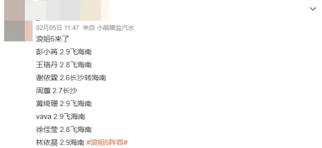 近日網(wǎng)上屢傳一份最新《浪姐6》的名單,香港代表一共有三位,包括何超蓮、洪欣、陳慧琳,未見早前傳出的李施嬅,不少網(wǎng)民眼見陳慧琳在名單內(nèi)都大呼期待,渴望看見天后唱跳舞臺(tái)。而另傳出多位藝人包括林依晨、徐佳瑩、謝依霖、彭小冉等,在這幾天內(nèi)陸續(xù)飛抵海南,準(zhǔn)備節(jié)目錄制。