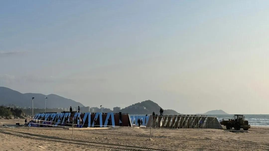 《浪姐6》傳在海口沙灘上搭建舞臺(tái)。(微博圖片)