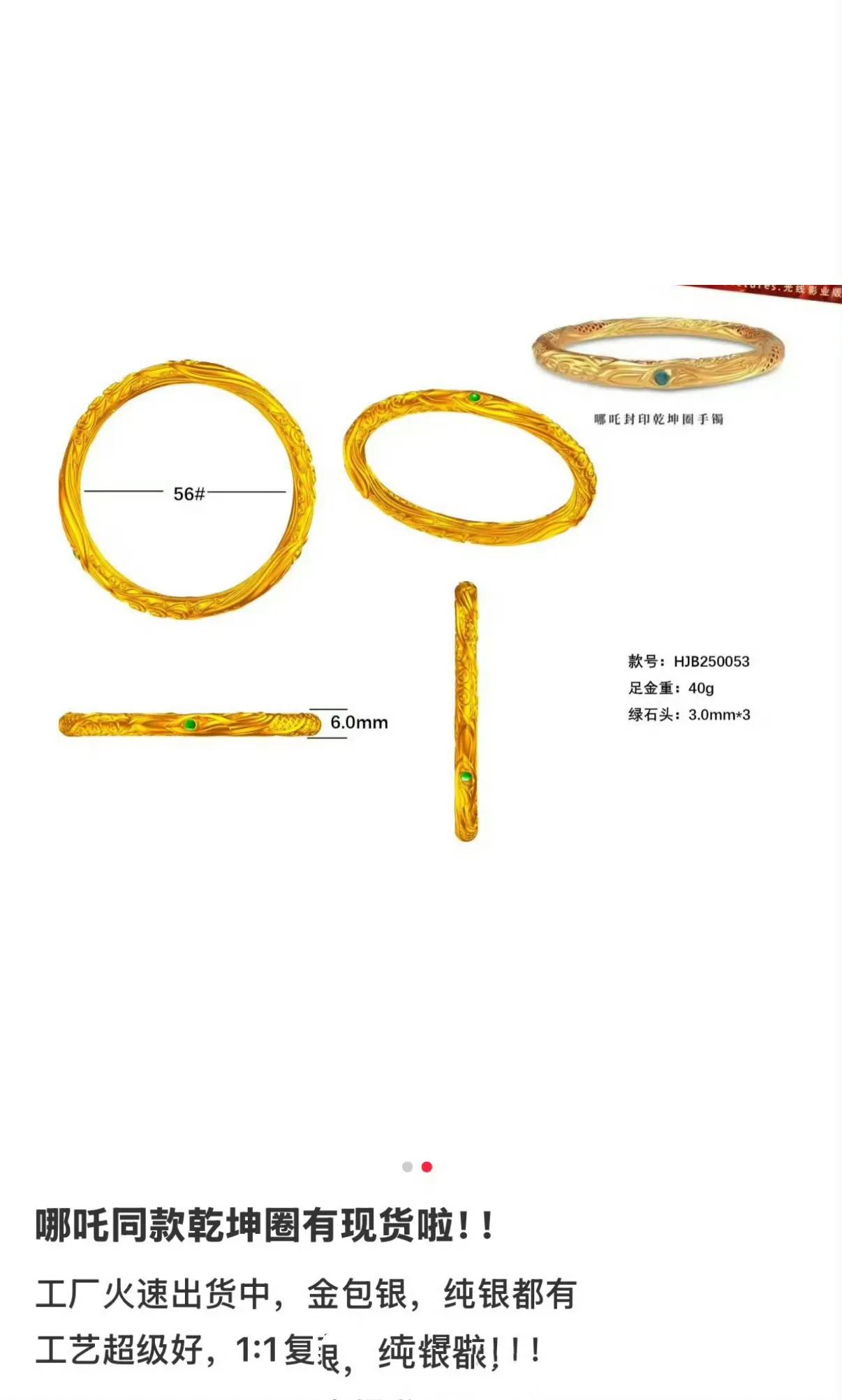 近日,深圳等多家金包銀首飾工廠紛紛表示,哪吒同款“金包銀”手鐲的訂單量呈現井噴式增長。據某深圳金包銀首飾工廠透露,其乾坤圈金包銀手鐲的廣告剛上架一天,就接到了數百份訂單,工廠正全力以赴,加班加點進行生產。