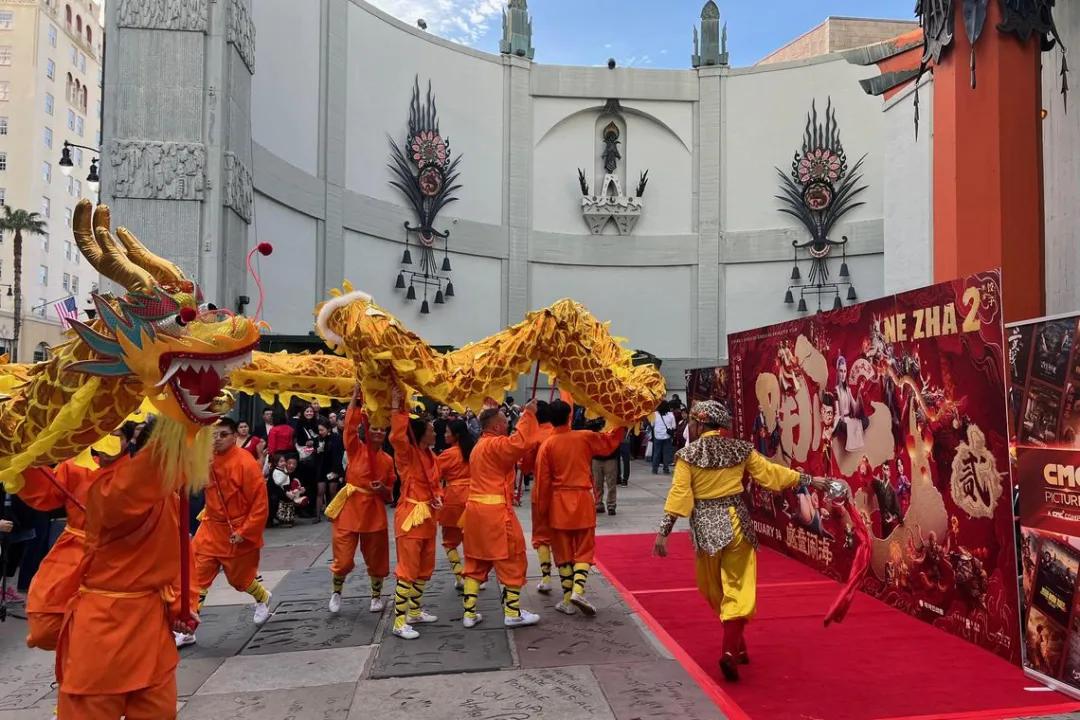 在美國,2月8日《哪吒2》在洛杉磯的好萊塢TCL中國大劇院舉行北美首映禮時,亞洲國際電影節主席、數十位好萊塢業內電影人親臨現場,數百名影迷熱情參與。