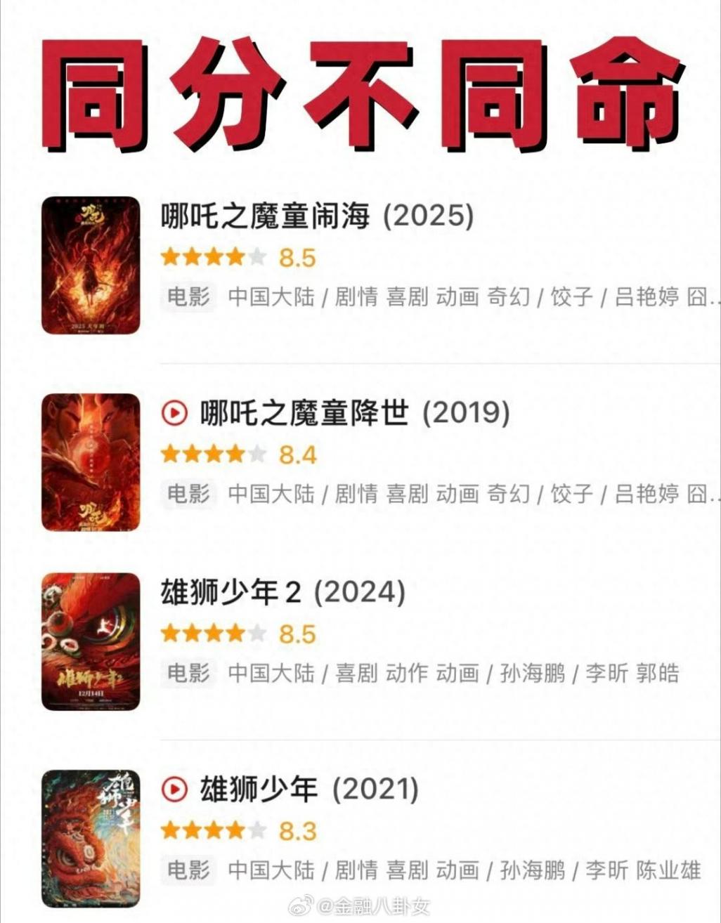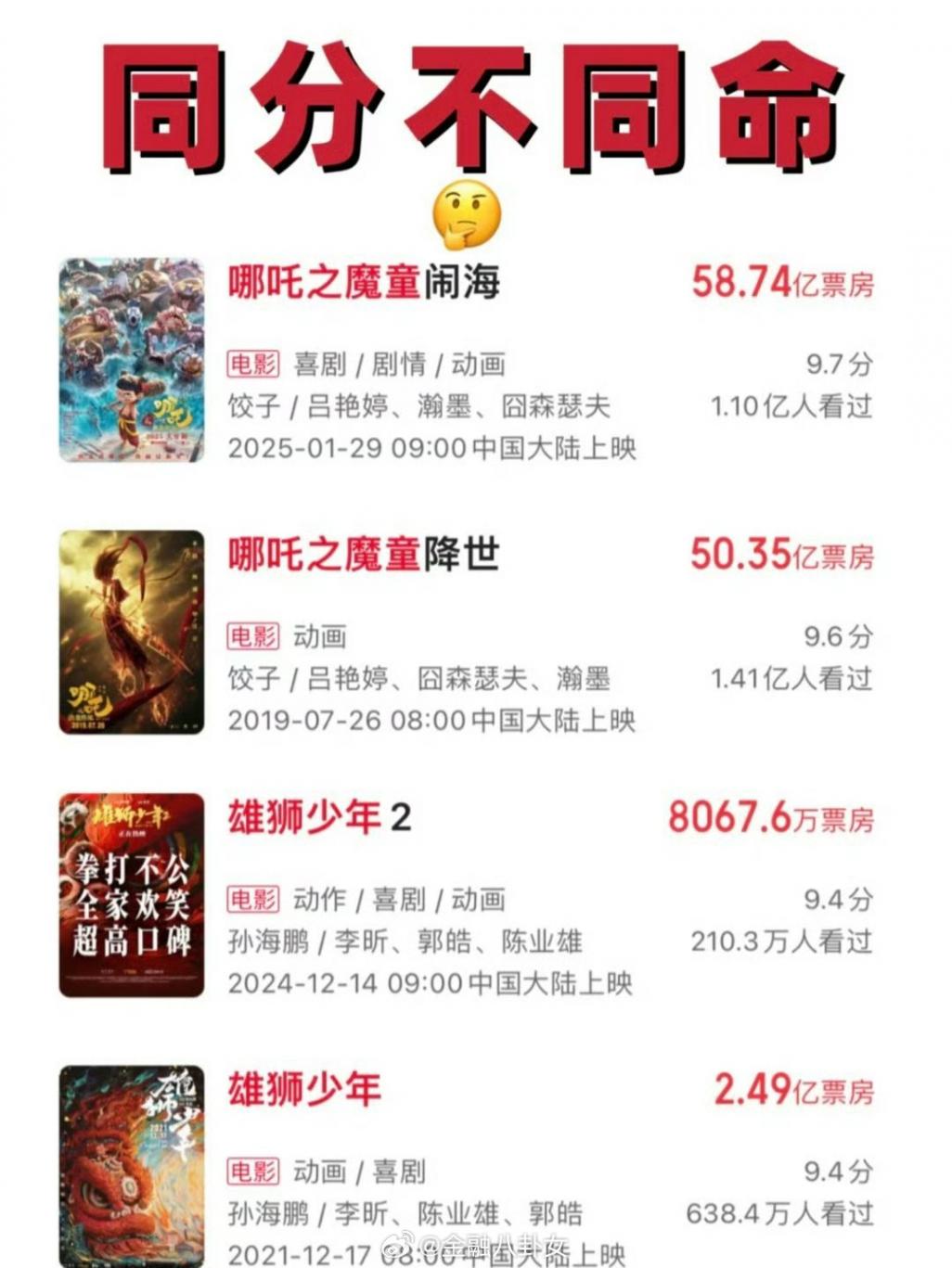 哪吒票房#都是國產(chǎn)動(dòng)畫,都是8.5分,票房差了100倍……#天雷滾滾我好怕怕傳到手影界了#