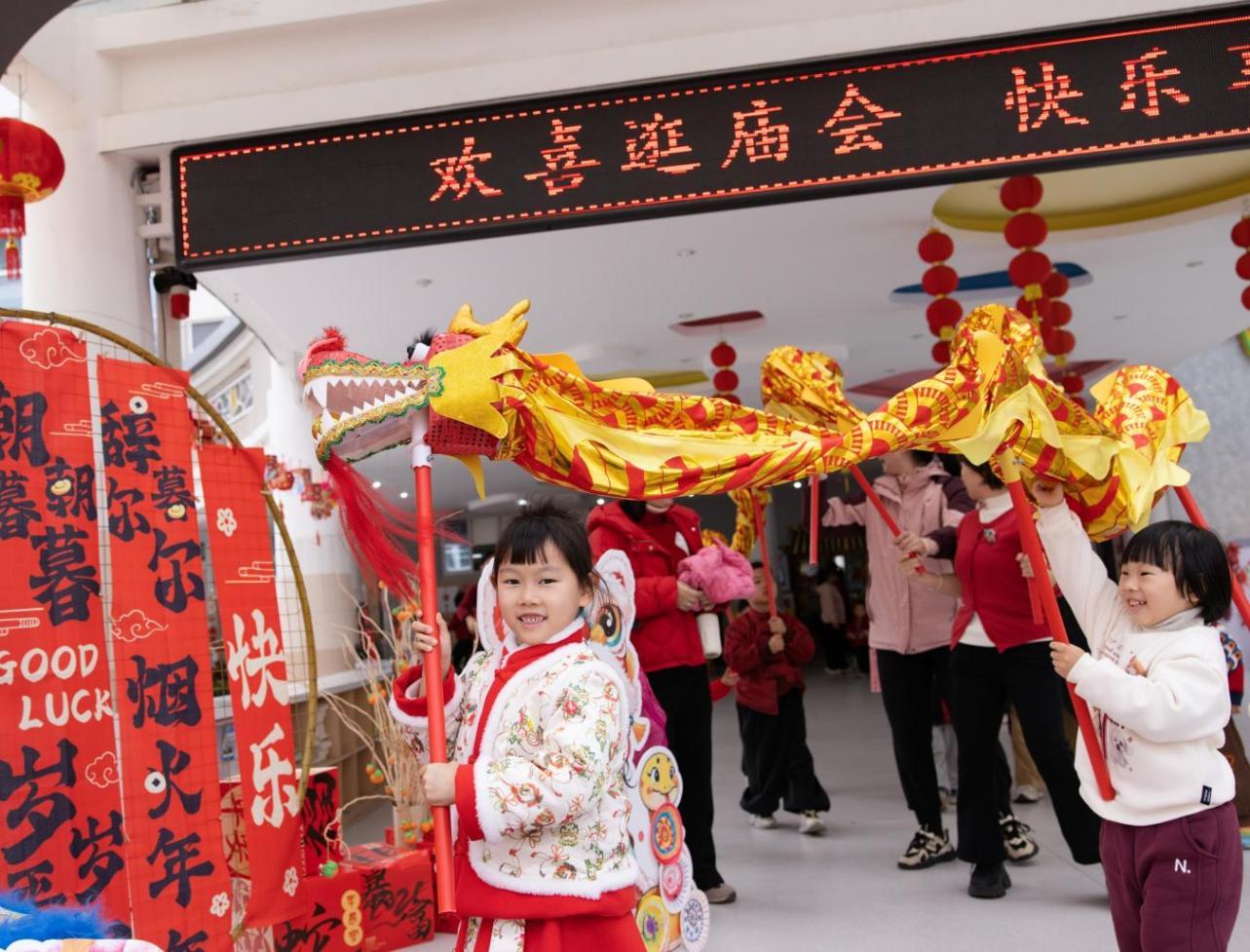 “福”字。美食坊內,南北年味香氣撲鼻——現包春卷、晶瑩湯圓、酥脆冰糖葫蘆吸引“小吃貨”們打卡品嘗。