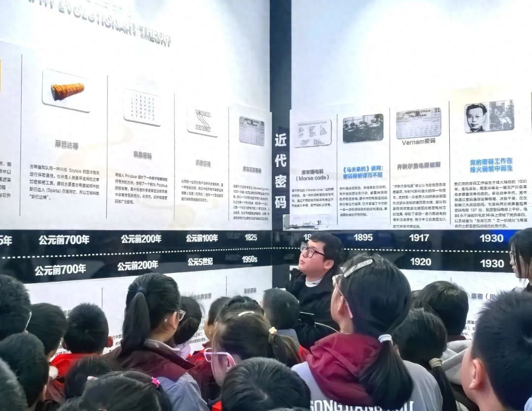 除了聆聽業界專家的講座,學生們還在專業講解員的帶領下進入密碼展廳參觀,通過實物展示、互動體驗和密碼科普趣味游戲等方式,直觀感受密碼技術的神奇與魅力。“密碼是像空氣一樣無處不在,密碼像信使一樣無處不達,密碼像衛士一樣守護安全……”說起“開學第一課”的收獲,上師大附屬松江實驗學校六(5)班學生魏東霖滔滔不絕。在驚嘆密碼技術日新月異的同時,松江四中高二(7)班學生袁子雯說:“雖然科技發展勢頭迅猛,但一切技術都是人類智慧的結晶,只要勤思考、多嘗試,許多密碼都能被破解。”此外,作為美術特長生,她還萌生了將圖案設計與密碼設置、密碼破解相結合的想法。