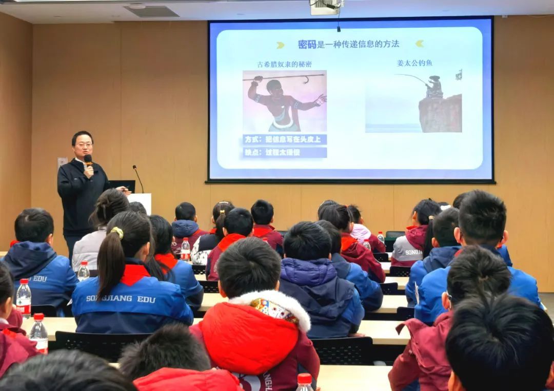 從古希臘奴隸的秘密,到姜太公釣魚的故事;從費斯托斯圓盤,到春秋虎符;從吳用藏頭詩,到二戰風云史……當這些古老神奇的故事娓娓道來時,孩子們不知不覺鉆進了密碼行業專家郭箏創設的密碼科普大世界。整場講座結束,大家對密碼技術的基本概念、應用領域、安全挑戰以及未來發展有了初步了解。