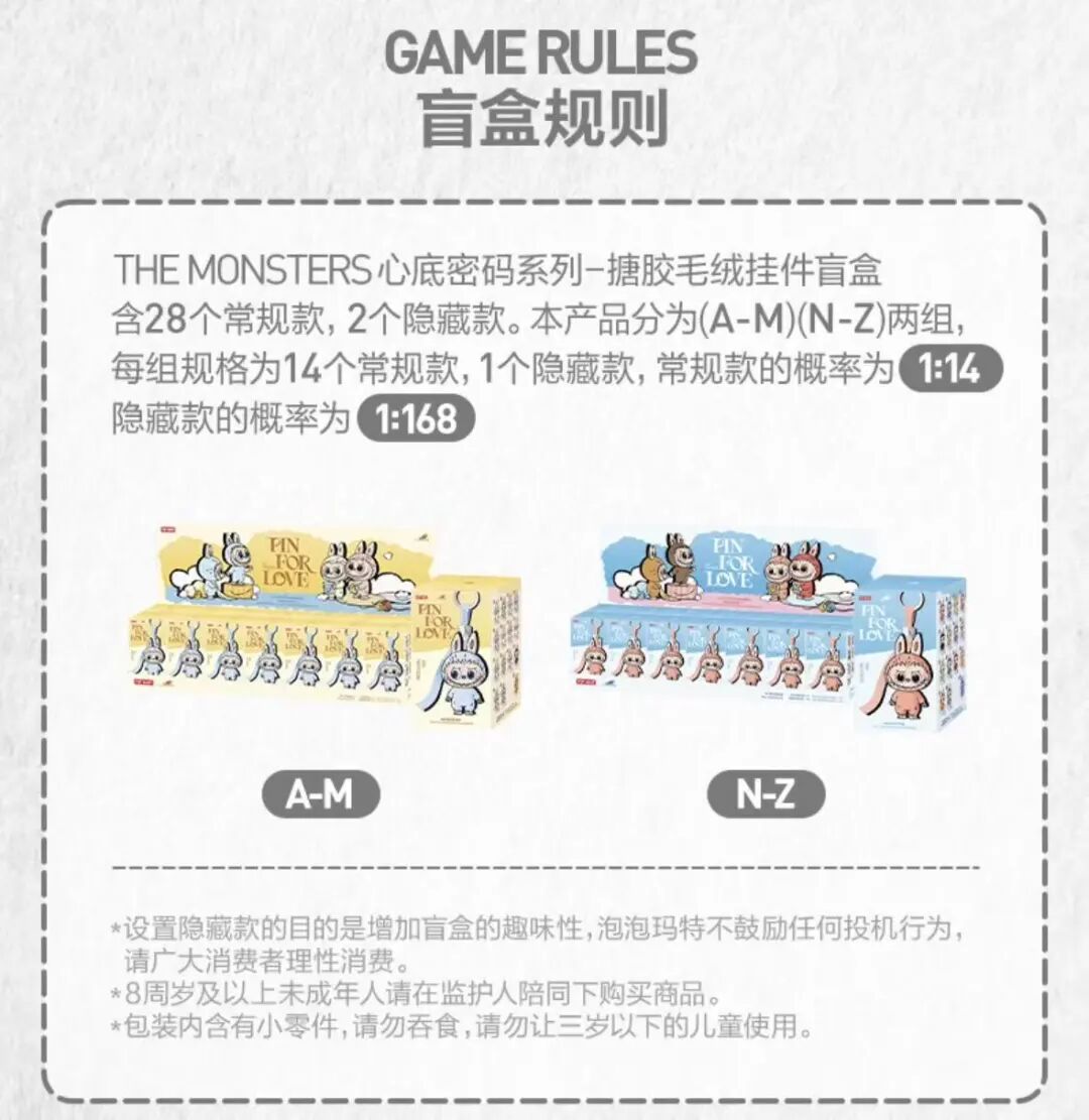 該系列(THE MONSTERS心底密碼系列)于8月28日22時線上發(fā)售,迷你版LABUBU單價79元,整套售價為1106元,共30款(含28個常規(guī)款和2個隱藏款)。