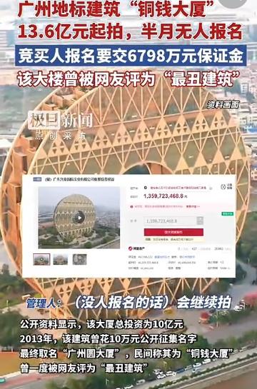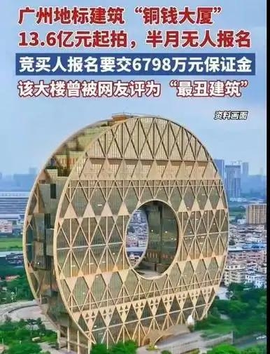 廣州最魔幻的劇情上演了!斥資10億打造的地標"銅錢大廈"(官方名廣州圓大廈),10月底掛上法拍平臺,13.6億起拍,還打了8折。結果呢?整整15天,6798萬保證金門檻前,競拍席空空如也,連個報名的都沒有!截至11月11日下午4點,圍觀群眾超萬人,卻無人敢接盤。管理人無奈攤手:流拍了,等二次降價吧。