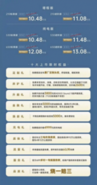 關(guān)于該車的上市權(quán)益,大家可以直接看。具體來看,像送充電樁、終身基礎(chǔ)流量免費(fèi)、置換補(bǔ)貼等都是非常實(shí)用的權(quán)益,也能看出埃安對(duì)于這款車型的重視。