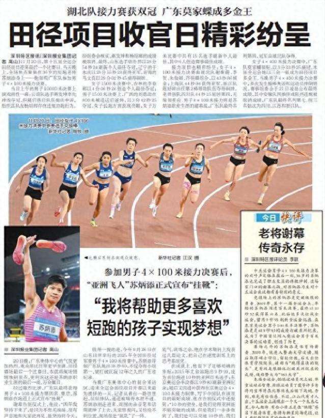 把視線拉回到不久前。今年9月26日,山東日照,2025年全國田徑冠軍賽男子4×100米預賽,蘇炳添帶著廣東隊跑出38秒60,拿到小組第一,還把沉寂12年的廣東省紀錄給翻新了。那是他狀態的注腳:即便只跑接力、即便把更多力氣用在科學備戰與教學上,該給到的硬輸出,他仍能給到。那一槍,像是在告訴所有人,這場謝幕要有分量。