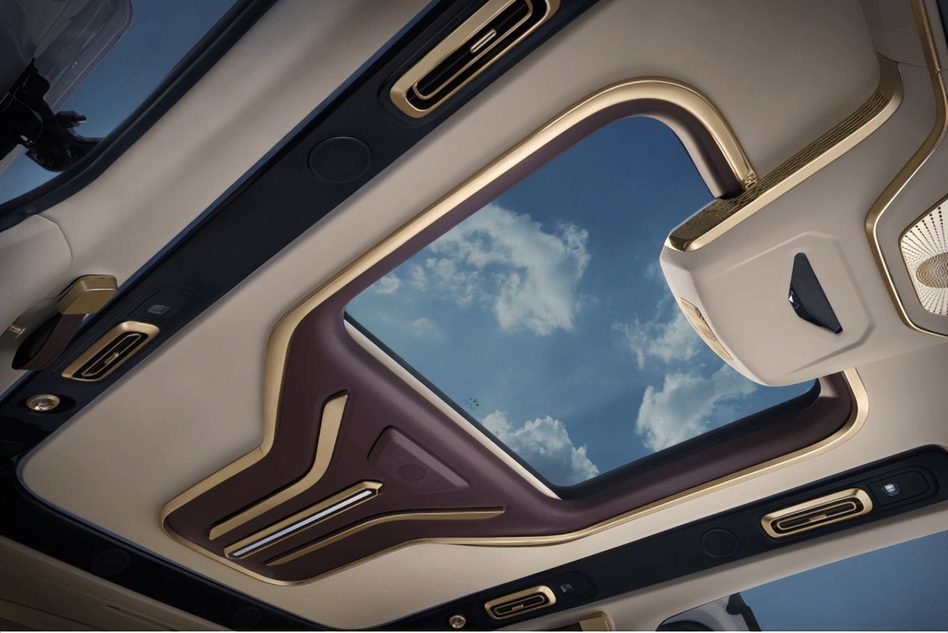 嵐圖夢(mèng)想家山河汲取東方美學(xué)之妙,凝練于方寸之間,鑄就溫潤(rùn)內(nèi)斂的典藏級(jí)空間。甄選天然影木鑲嵌于車門與中控,每一道紋理都是自然生成,彰顯獨(dú)一無二未經(jīng)修飾的天然之美,天然木紋中鐫刻著大自然的山水脈絡(luò),水木相生,根繁葉茂,助力基業(yè)長(zhǎng)青。新車更以“鎏光躍金”為理念,內(nèi)嵌66處鎏金飾件,暗指“六六大順”吉兆,以金守土,山河永固,寓意家業(yè)穩(wěn)固、萬事順意。
