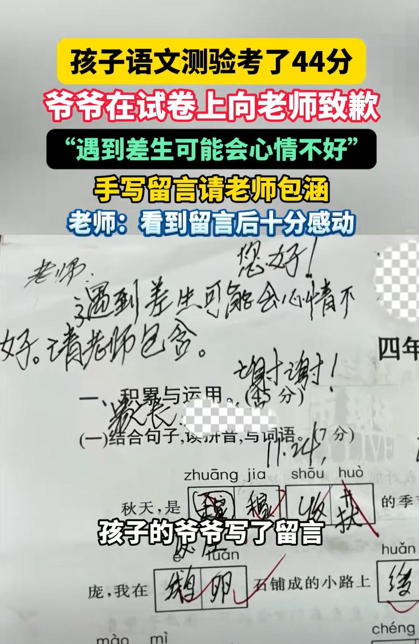 事情很簡單,說起來還有點丟人,一個四年級的男孩參加語文測試,最后分數出來只有44分。