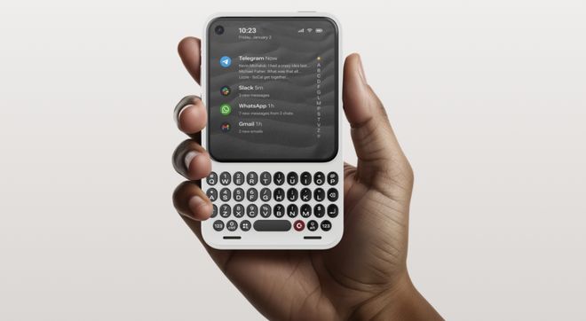 而在本屆 CES 上它們也終于發布了自家的第一臺手機——Clicks Communicator。從外觀來看,它的整體設計語言跟早年的黑莓手機十分相似:熟悉的輪廓、熟悉的實體鍵盤、熟悉的小尺寸屏幕、熟悉的 3.5mm 耳機孔、熟悉的 MicroSD 卡槽等等。